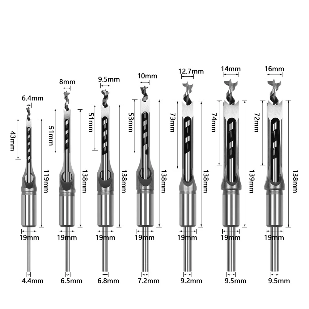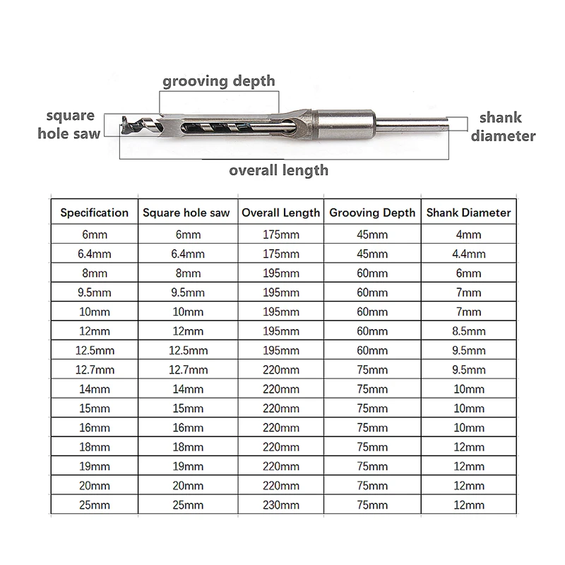 1 Pieza Broca de Agujero Cuadrado de 6-30 mm – Broca de Espiral, Cincel de Mortaja Extendido para Tallado y Carpintería DIY